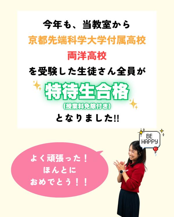 京都先端科学大学付属高校、両洋高校を受験した生徒さん全員が