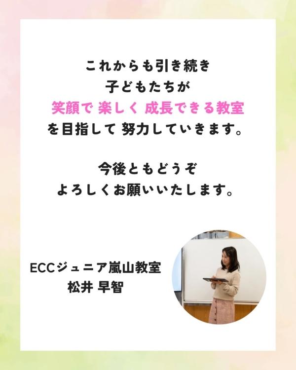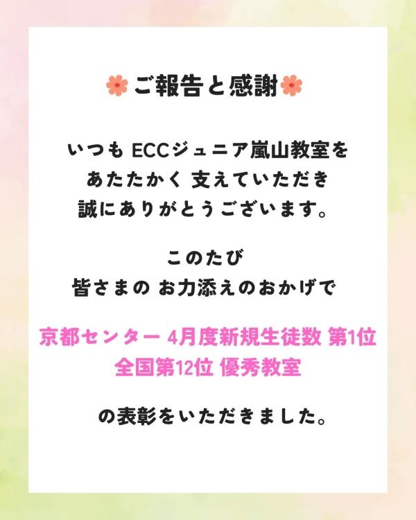 いつもECCジュニア嵐山教室をあたたかく支えていただき、誠にありがとうございます。