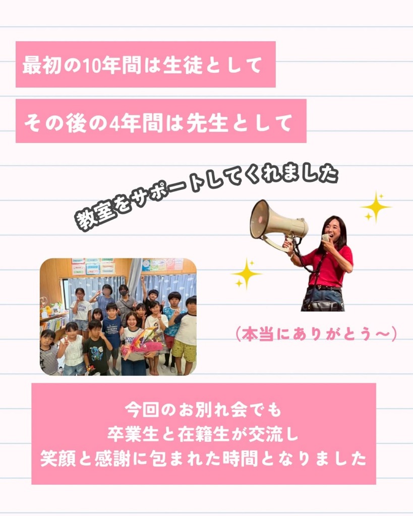 その後の4年間は先生として松井を支え、教室をサポートしてくれました。