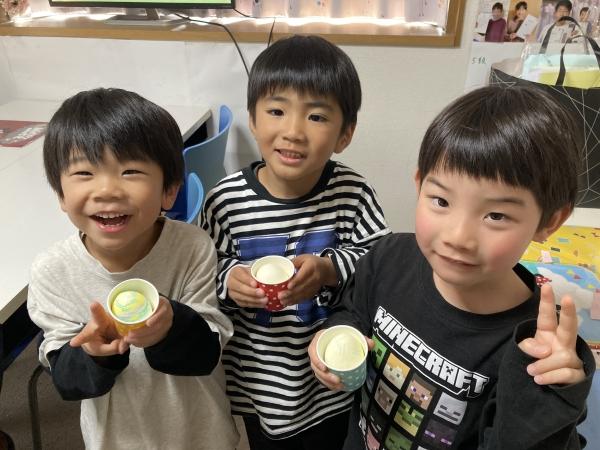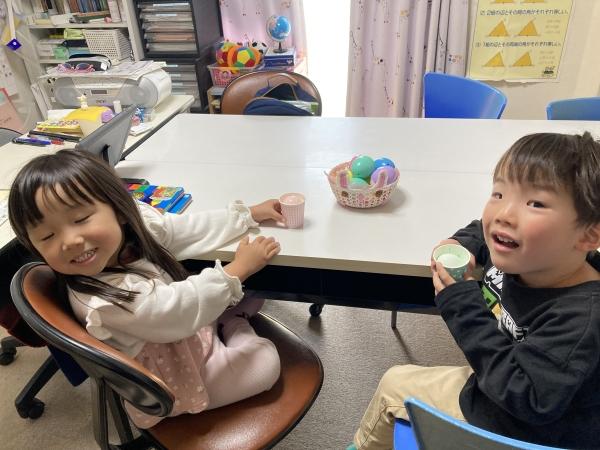 2、3歳児クラス 初めてのイースターパーティー!卵を割らないように気をつけて絵を描くことができました!