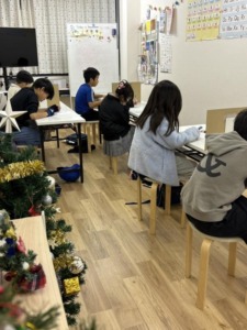 「名前の後に’s って言わなあかんでー。」と、お互いに指摘しあったり。協力し合いながら頑張りました。