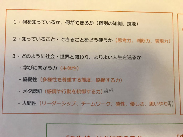 これまでのような知識注入型の一斉授業ではなく、持っている知識を活用して協働的に学ぶ子どもを育てていく、という意味です。