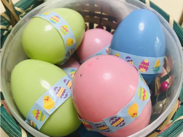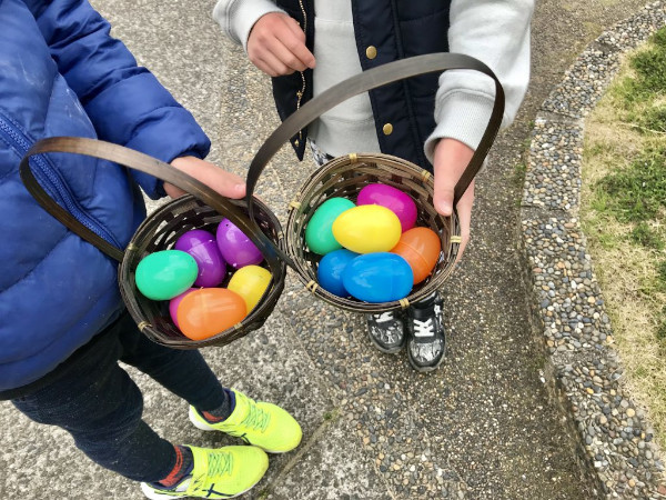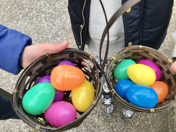 バスケットいっぱいのイースターエッグを見つけて大満足。