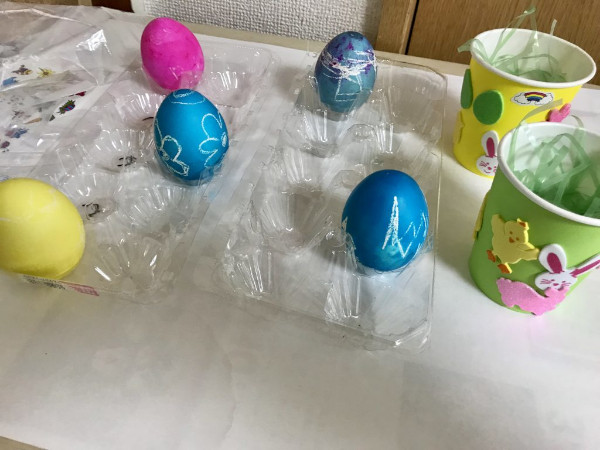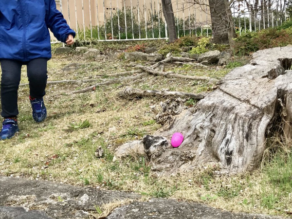 幼児クラスは参観日でもあるので、ママたちにご協力をお願いしてイースターエッグハントをしました。