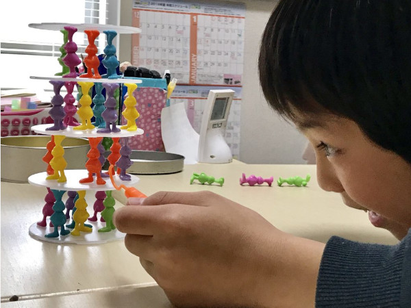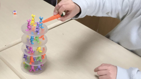 サイコロで出た色のバニーを人参のカギで引っ張り出して落とします。