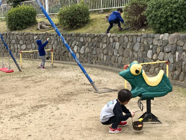 幼児クラスはその間にママたちが公園でイースターエッグを隠してくれました。