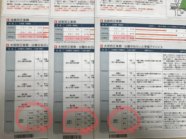 リーディングやリスニングで調子が出なかったところをライティングでカバーし、合格点を確保しました。