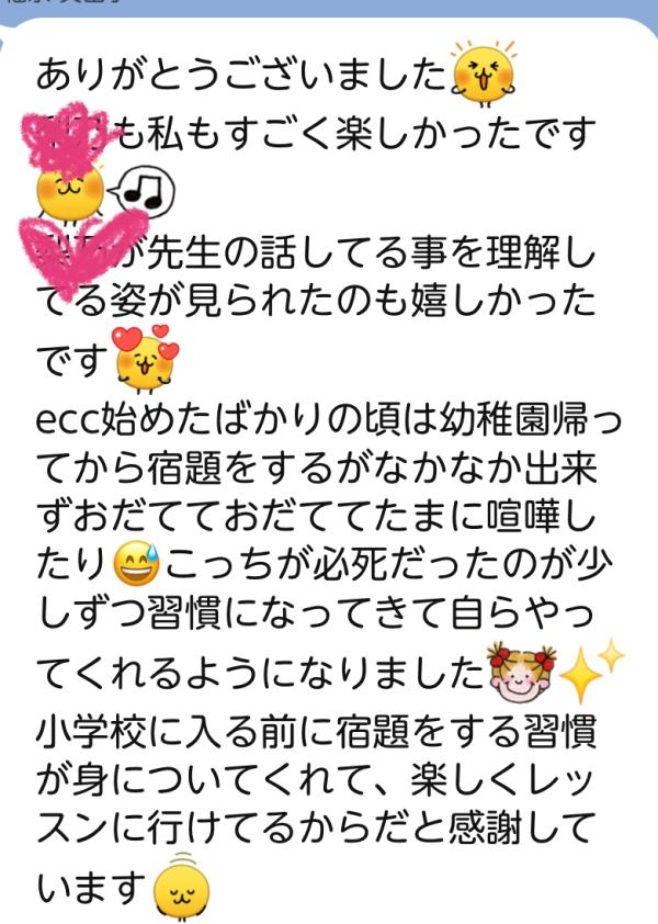 それはきっとお互いさまで、私も、レッスン中に気づいた ささいなひと場面でも保護者の方へお伝えするようにしています。