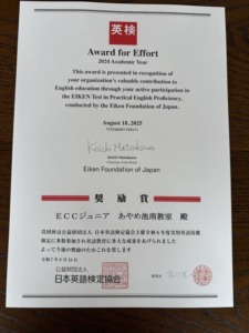 ECCジュニアあやめ池南教室は英検®︎準会場に登録されています。