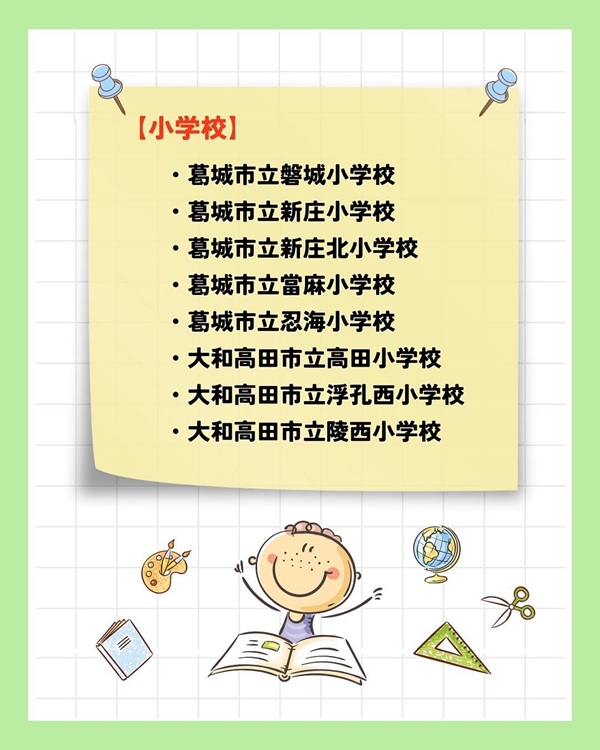 葛城市立磐城小学校•葛城市立新庄小学校・葛城市立新庄北小学校・葛城市立當麻小学校・葛城市立忍海小学校