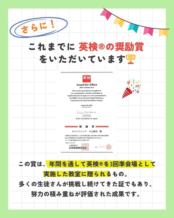 さらに!これまでに 英検®の奨励賞 をいただいています!
