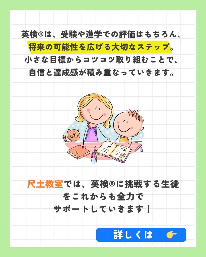 尺土教室では、英検®に挑戦する生徒をこれからも全力でサポートしていきます!