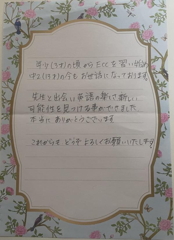 当教室に長く通ってくださっている生徒の保護者様からうれしいメッセージをいただきました。
