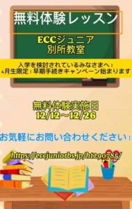 ECCジュニア別所教室では、無料体験を実施中です♪