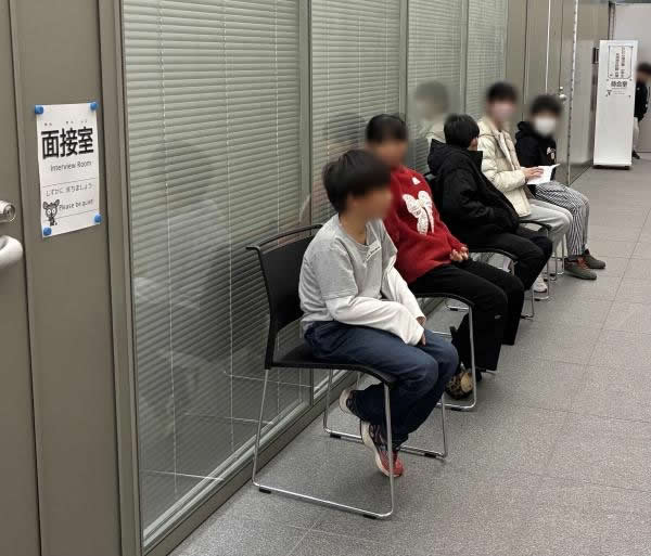 緊張しながら入室を待っています。沢山練習して来たから大丈夫ですよ。自信を持って行こう。