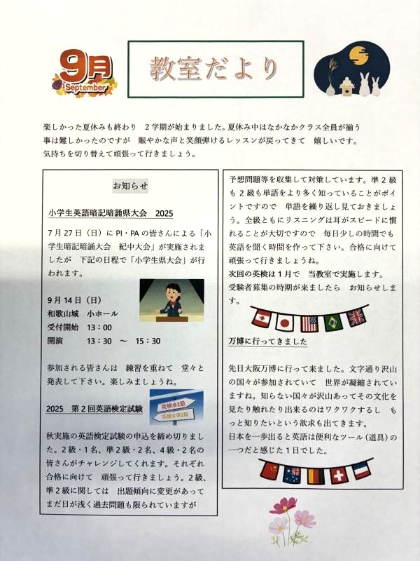 楽しかったハロウィンも終わり 12月実施のECC全国児童・中学生英語検定試験に向け 準備を始めます。春からの到達度をはかる良い機会です。