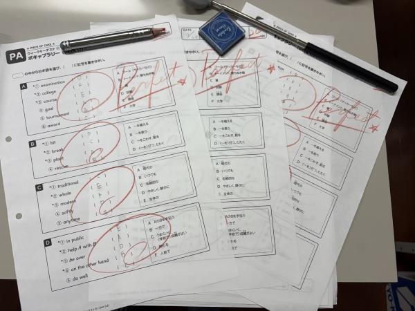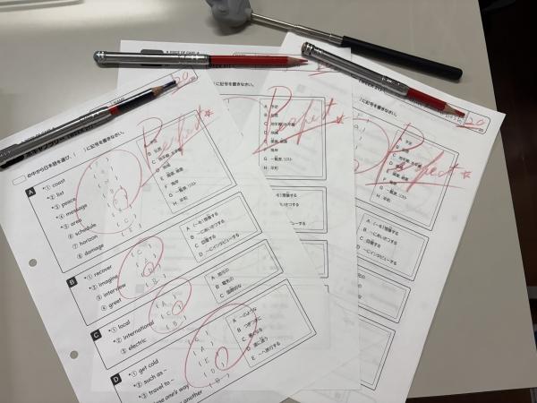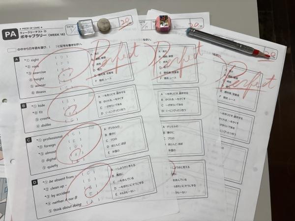 PAクラスで習う単語も難しいですが全員満点おめでとう。よく頑張っています。嬉しい。