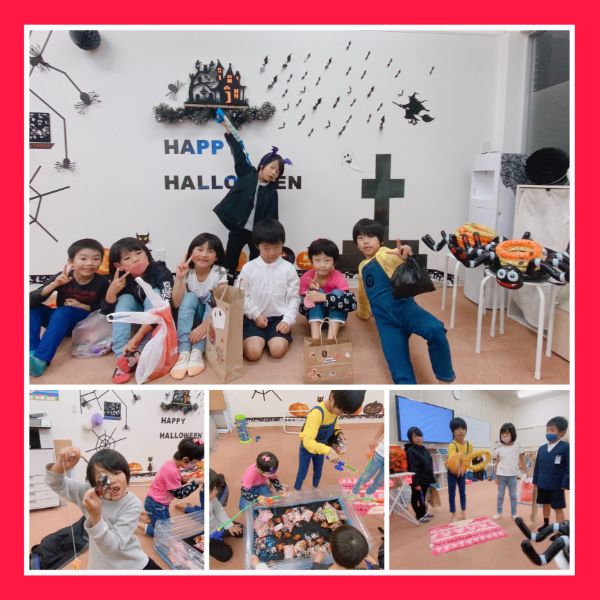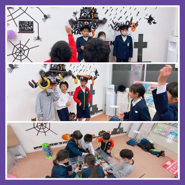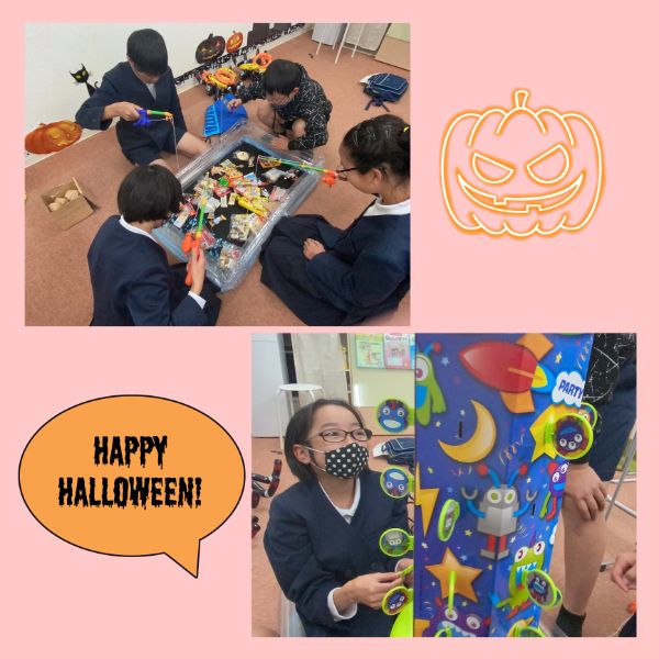 子供たちがとても楽しみにしているイベントの一つです。10月が近くなると生徒たちはソワソワ。例年は全クラス集まって開催するのですが今年は状況を考え少人数で実施しました。各学年で英語を取り入れたゲームをして競い合ったり、お菓子釣りなどをして楽しみました。