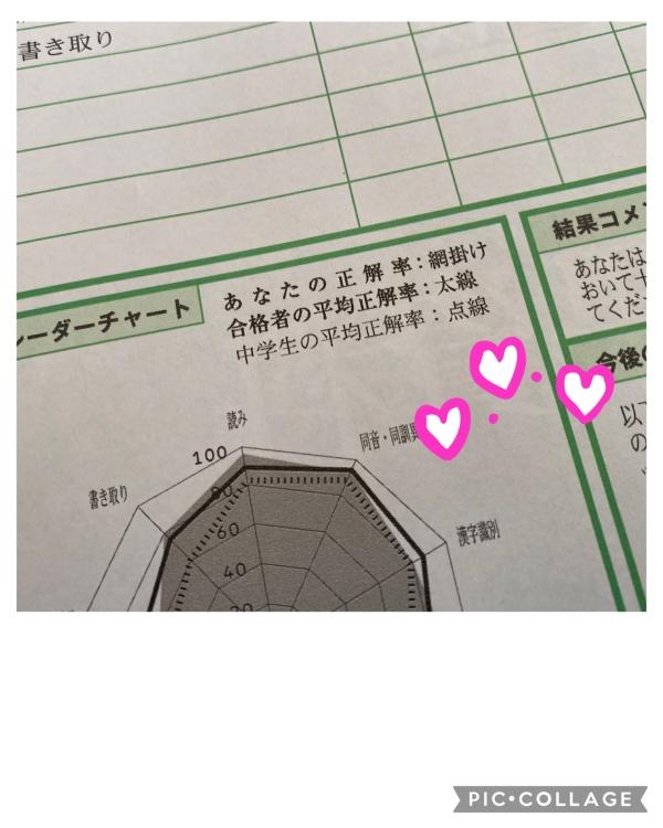 今回の結果を見ながら、生徒さんから、「私、音読み、訓読みのところ間違えとったわ〜」「漢字の書き取りは全部できてた★」の声を聞きました。