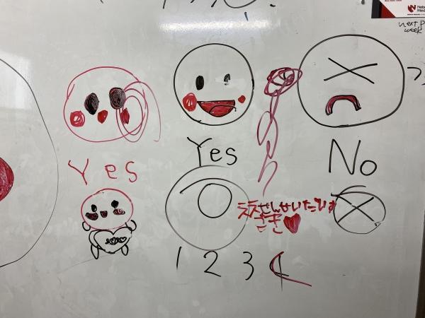お母さまのお話が終わりホワイトボードには、えいごのせんせいだいすき♡のメッセージが♪