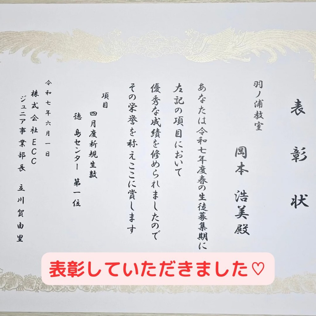 羽ノ浦教室が、この度表彰されました♪