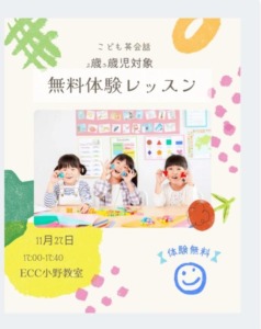 本物の英語力が身につく体験型レッスンへ、ぜひご参加ください。ECCジュニア小野教室でお待ちしてます♪
