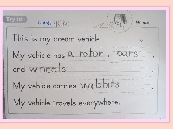 各ユニットで学んだ課題から自分で作った文を発表する機会があります。