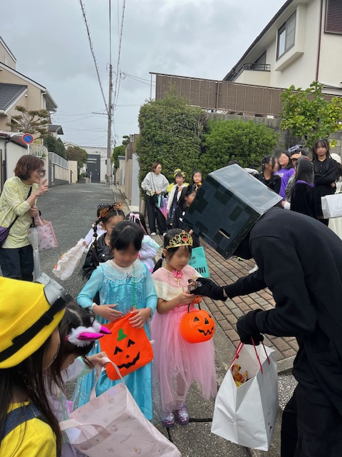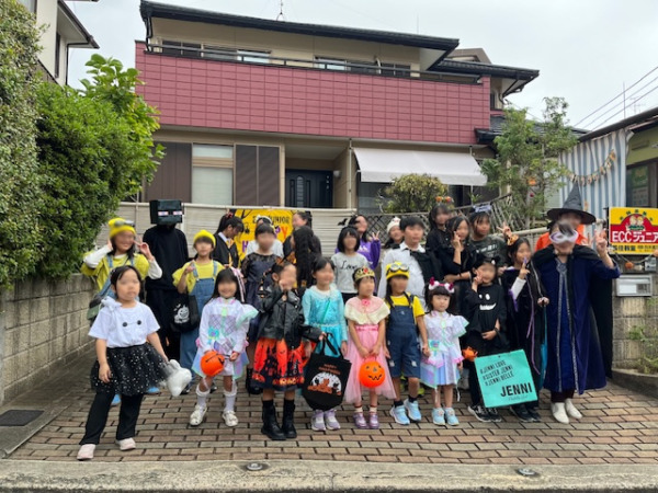 10月26日日曜日の14時から長住教室のハロウィンウォークを開催しました。毎年この時期やっていて、今年も20人の生徒達が参加してくれました。ハロウィンウォークは子供たちがtrick-or-treatと言いながら近所の家と道に立っているサポーター達にお菓子をもらうイベントです。今年は去年までお菓子をもらう側だった生徒が中1になりサポートする側に回ってお菓子を配ってくれました。もうひとりお手伝いをみずからかって出てくれた高校生もいて感謝しています。