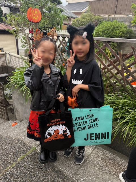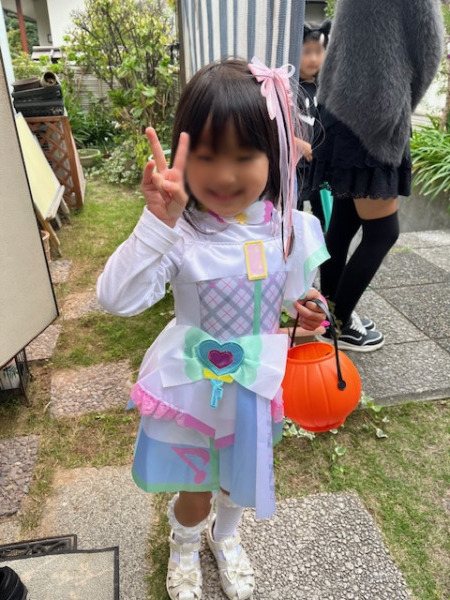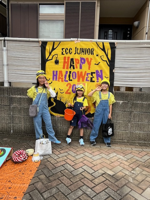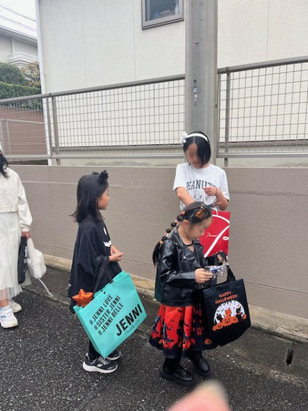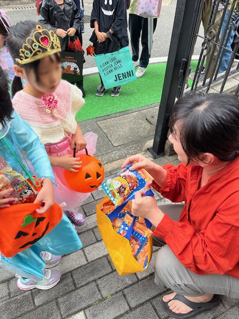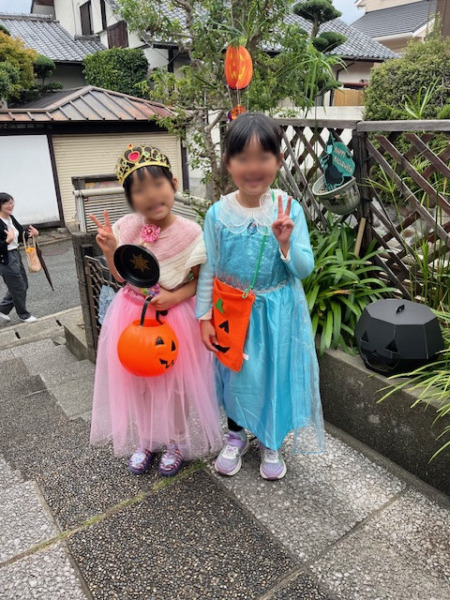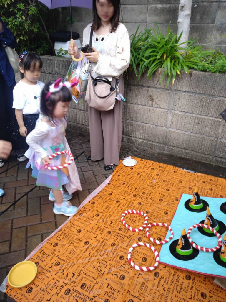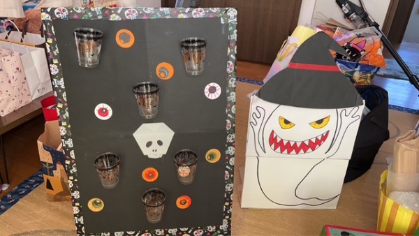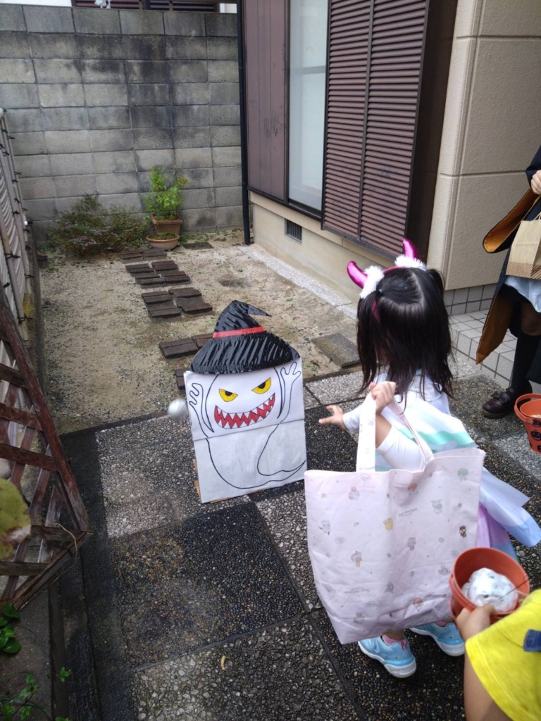 ハロウィンウォークの後には教室の駐車場でゲームもしました。残念だったのはお天気で、朝晴れていたのですが14時くらいからポツポツきてなんとかウォークする時までは小雨で回れたのでが、ゲームの途中から雨がひどくなり、それでもメインのゲームだけやって2時間くらいの予定が1時間ぐらいで短縮して終わりました。それでもみんな楽しんでくれたみたいで、終わったその日に保護者からお礼とお菓子をたくさんもらって喜んでいた、ゲームもとても楽しかったと言うコメントが次々と来てとてもうれしかったです。生徒達が、大きくなった時、英語教室でのハロウィンウォークが楽しかったと思い出すことができるようにまた来年も頑張りたいと思います。