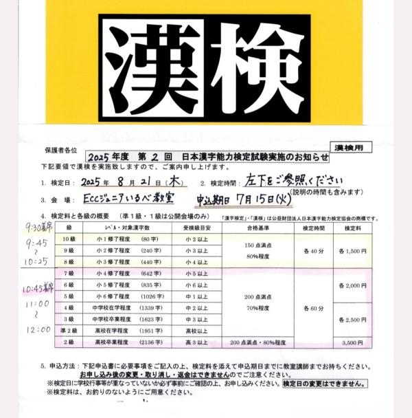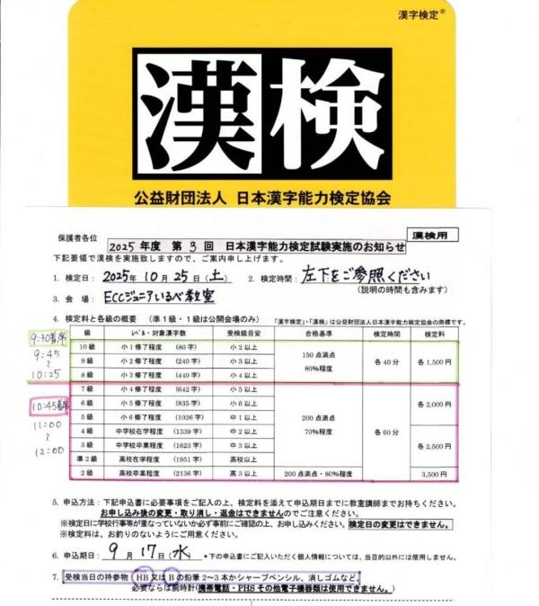 ※いるべ教室は実用数学技能検定の準会場に登録されています。