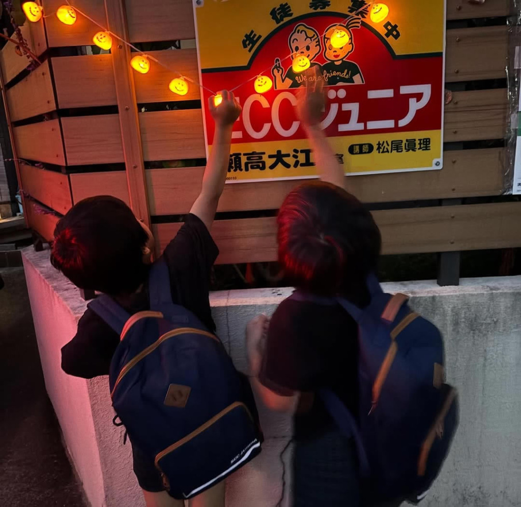 “train station”のイラストを見せて、お手本を示して発音練習。
