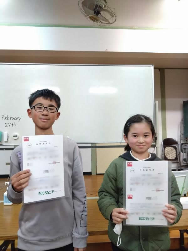 昨年度修了式に合格通知が間に合わず、で少し遅れての合格証書を手にしました!