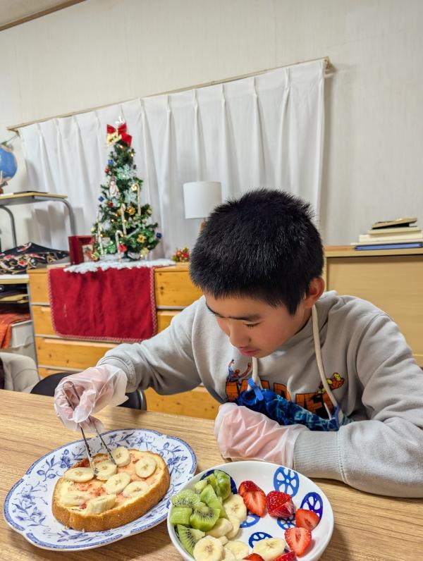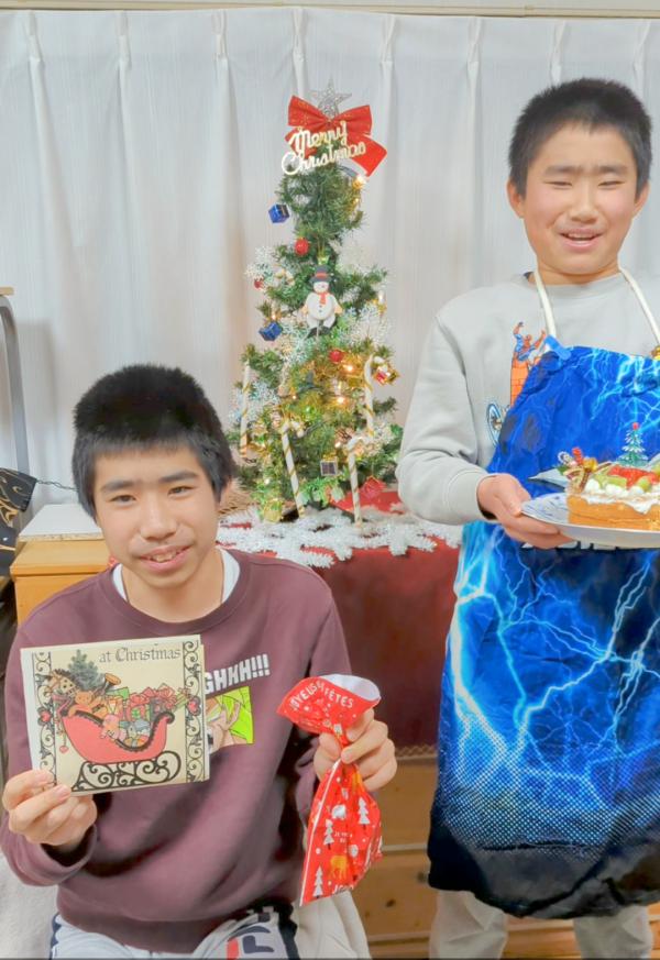 2025.4.11 クリスマスレッスン 教室もクリスマスムードに、 クリスマスケーキを作ろう、 ケーキも美味しそうにできました! 中学生はクリスマスカード作り! クリスマスカード。初めて英語で書いたよ!