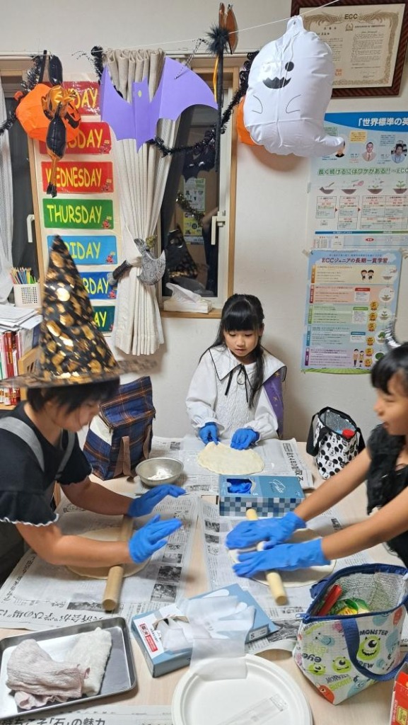 ひばりヶ丘教室では、毎年ハロウィンパーティーではピザ作りをしています。