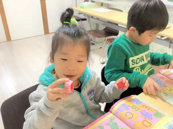年長さんのクラス アルファベットを色鉛筆で書くの楽しい