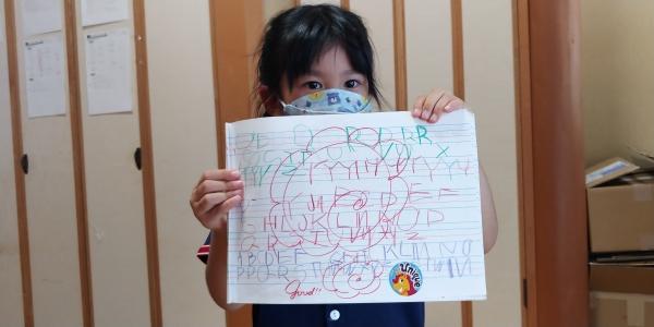 幼児さん。ノートにアルファベットをたくさん練習してきました!