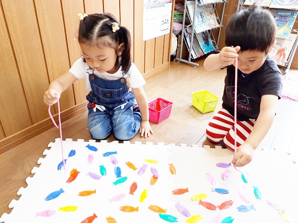 PBクラス(年中年長)で色の学習で さかなつり を しました。かわいいでしょ?