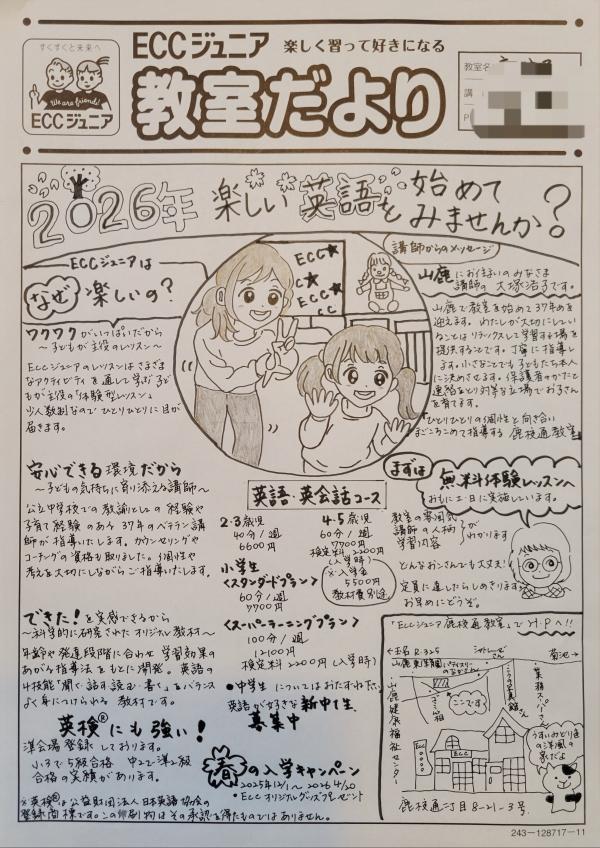 その絵をもとに、今年も手書きで「教室だより」を書きました。