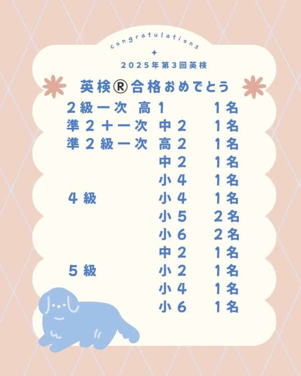 英検®合格おめでとう!よく頑張りました!