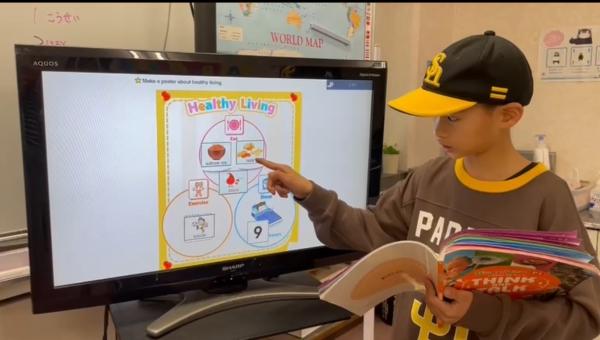 Healthy Living(健康的な生活)について学び発表しました。レッスンでは英語で考え発表する練習をします。