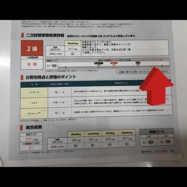 「準1級」合格範囲レベルを大きく上回る好成績での合格です。