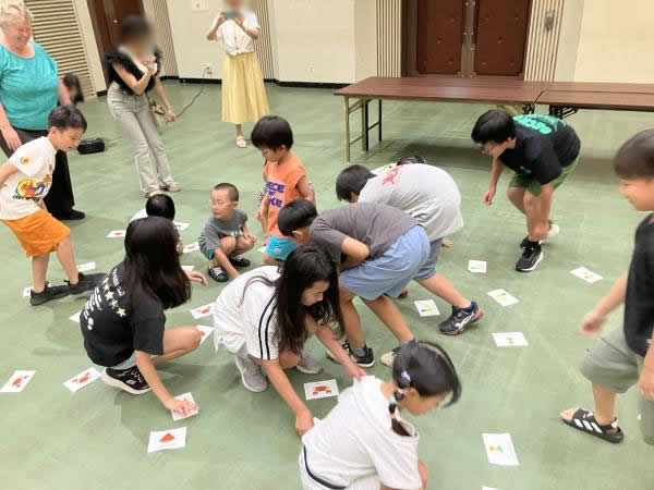 当教室生徒 vs. 他の教室の生徒さんでカードをすばやく自分のチームのカードにひっくり返します。