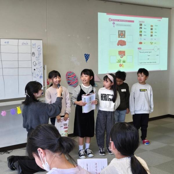 3/23に、網干市民センターでイースターパーティー兼学習発表会を行いました。ニュージーランド出身のネイティブの先生にも来て頂き、英語ゲームをしたり、卵さがしをしたりと楽しい時間を過ごしました。
