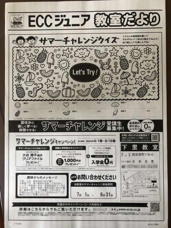 ECCジュニア下里教室では、無料体験を実施中です♪