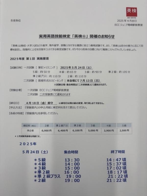 2025年度第1回英検®申込み受付を開始しました