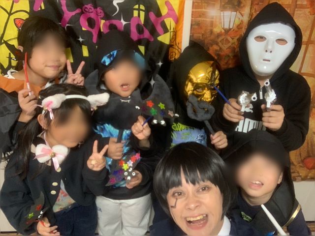 可愛い幼児クラス生徒さんの仮装。今年は鬼滅の刃が大人気でした。