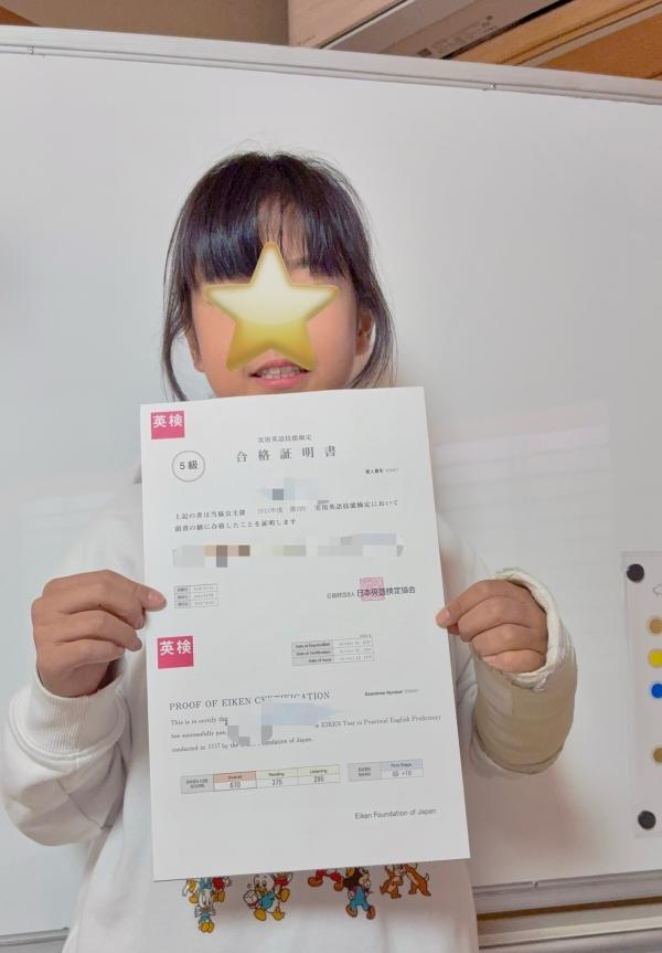 普段からホームワークをしっかり取り組むAちゃん。その努力が結果に表れ、なんと5級を受験したにもかかわらず、既に4級の合格点を超えている実力でした!