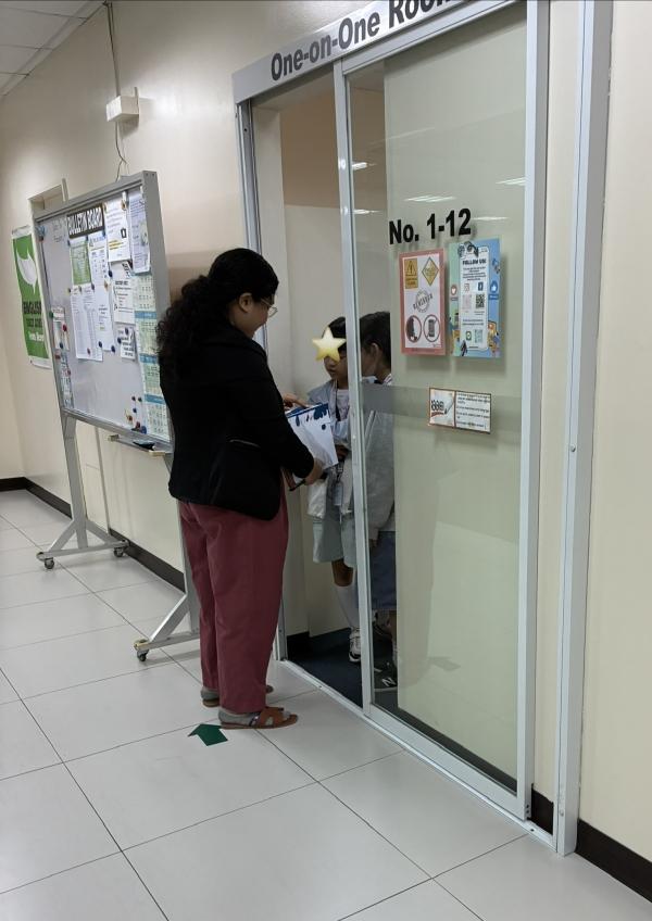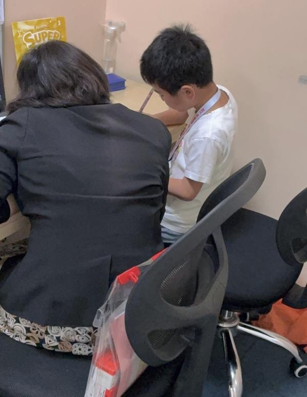 小学生さん個人レッスンの様子です。とにかく優しくて笑顔が素敵なフィリピンの先生。だから安心です。
