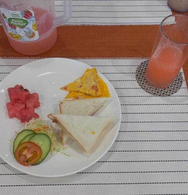 セブ短期留学2日目の朝食です。おいしい!生野菜を食べられるのが嬉しいです♪