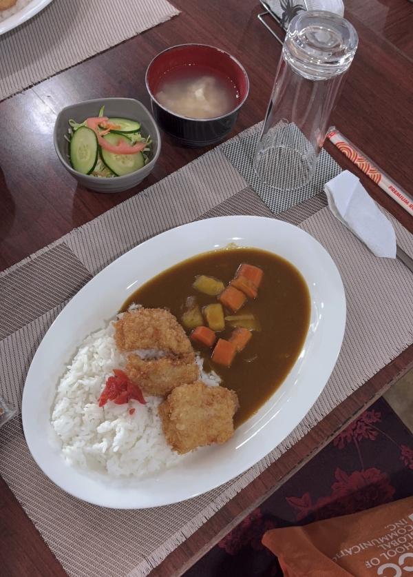 セブ短期留学2日目のお昼ごはん。魚のフライが柔らかくておいしい。完全に日本人向けの味です。